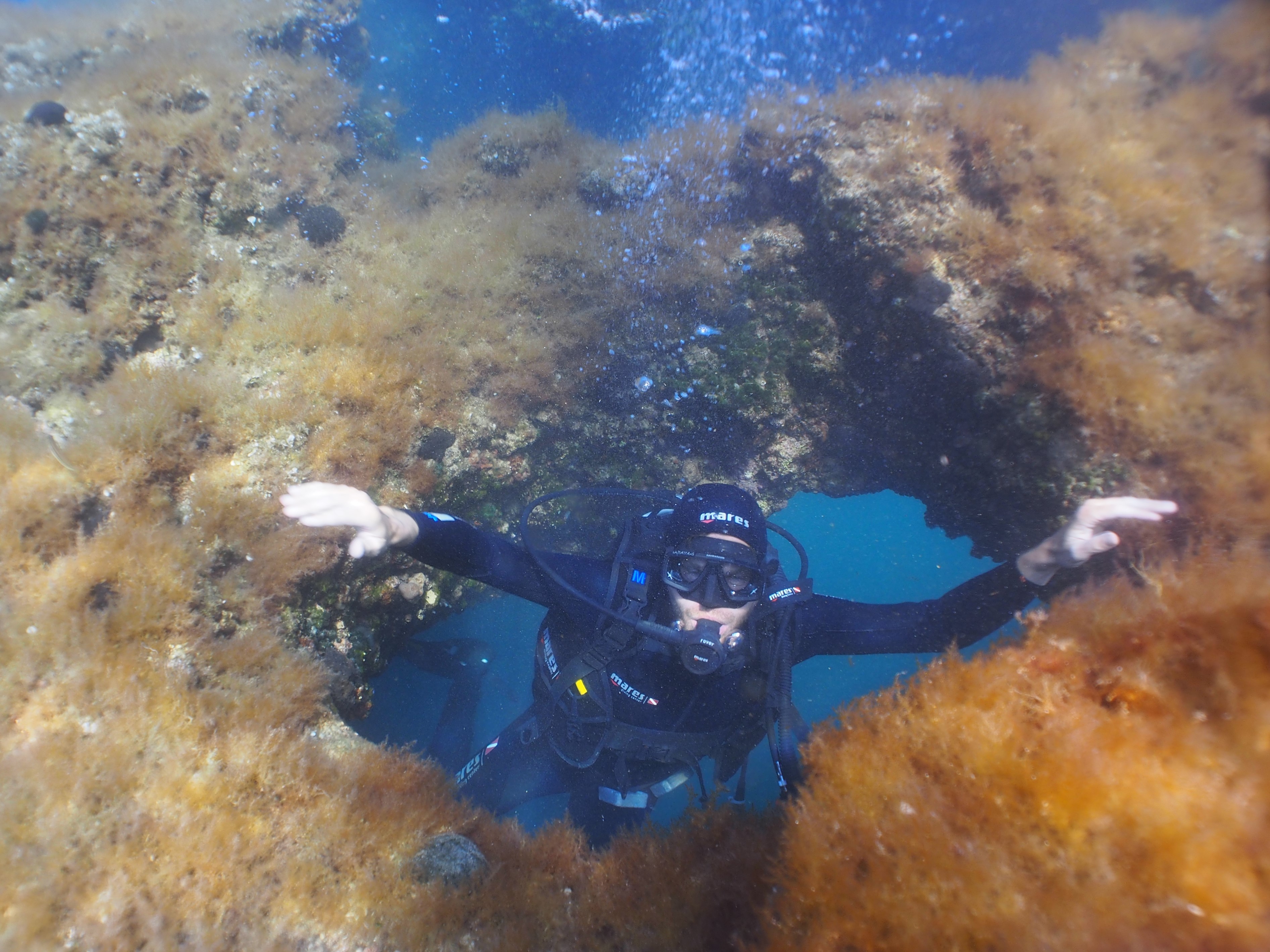 Die zweite etwas kleinere Höhle 10x5m befindet sich in einer Tiefe von 17 Meter. Auch in diese können zwei Taucher bequem nebeneinander eintauchen.