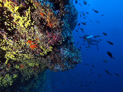 Obwohl andere Wände sensationellere Farben aufweisen, meint unsere Meeresbiologin Jelena dass die Artenvielfalt hier unübertroffen sei.