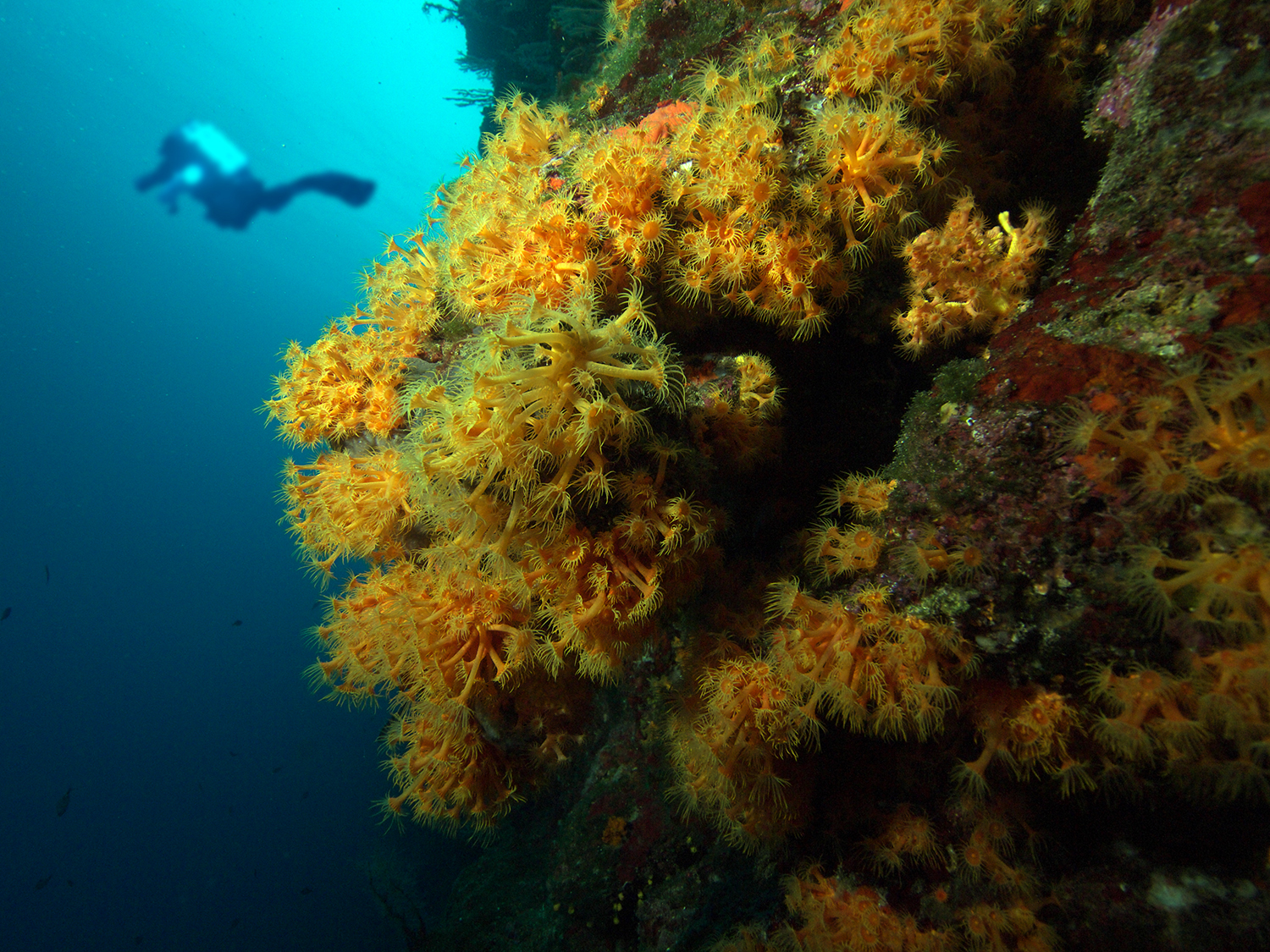 Der Boden ist nicht so tief wie in den anderen Kornaten-Steilwänden. Hier können auch Anfänger entspannt die ersten Erfahrungen im Steilwandtauchen sammeln.