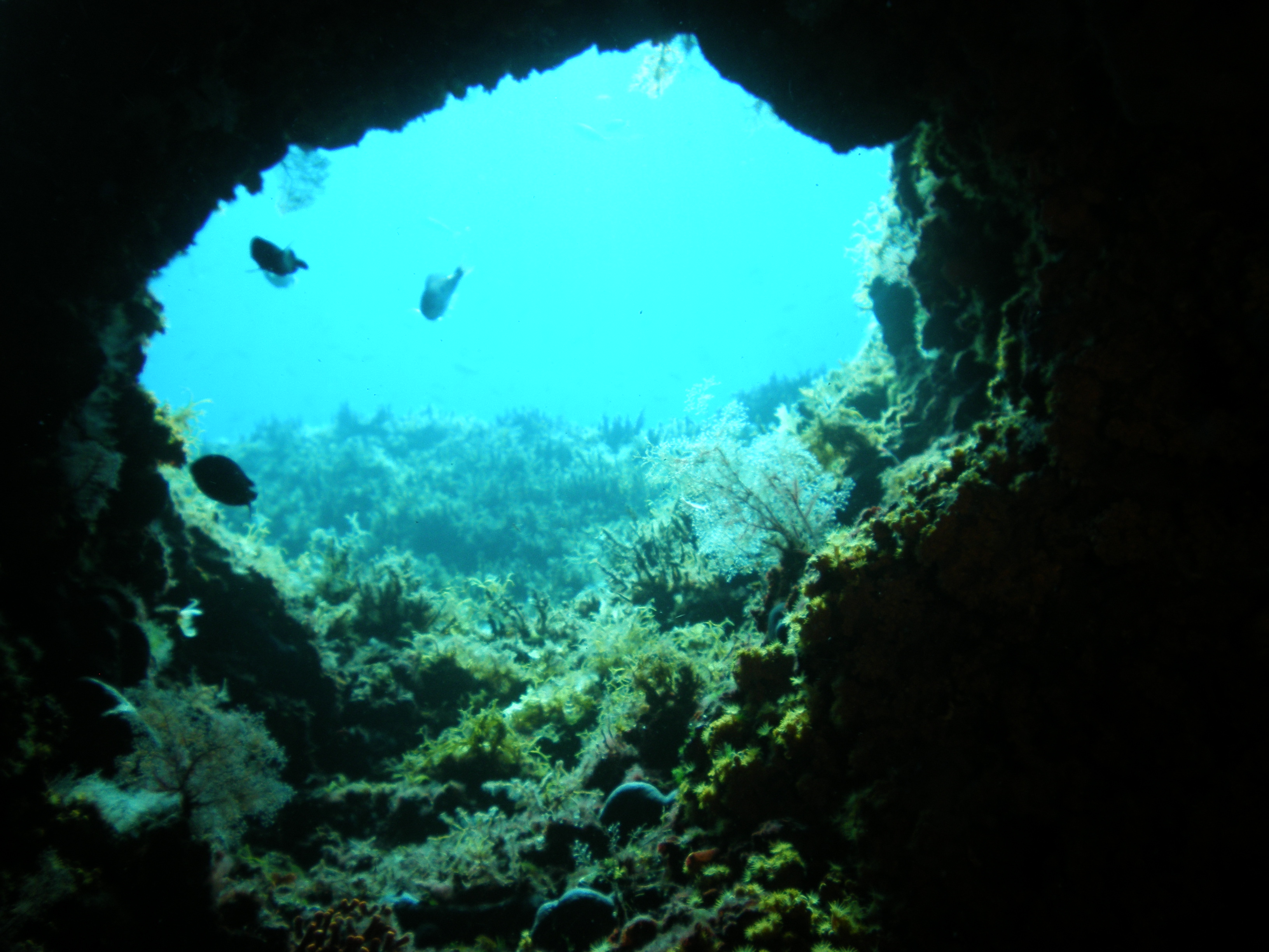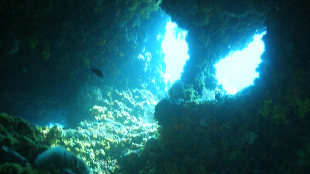 Abgetaucht wird ca. 40 Meter vor der Küste der Insel RAB an einer seichten Stelle auf 7 bis 8 Meter. In diesem Tiefenbereich befindet sich ein algenbewachsener Tunnel mit einer Länge von ca. 8 Metern. Dieser ist mit gelben Schwämmen und Anemonen bewachsen und kann sicher durchtaucht werden. Die Lichtbrechung der Sonnenstrahlen verzaubert die Unterwasserwelt.