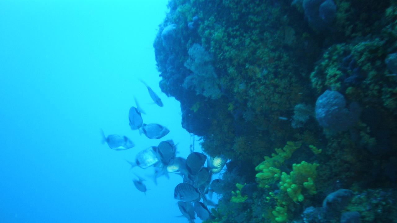 Hier beginnt die mit Gorgonien und Schwämmen bewachsene Steilwand bis in die Tiefe von 55 Meter abzufallen. In Spalten und Höhlen tummeln sich Krebse, Hummer und Langusten, Fischschulen, Zahnbrassen und Oktopoden beleben die Unterwasserwelt.